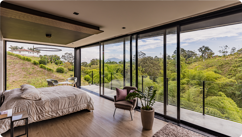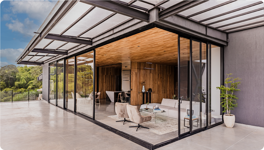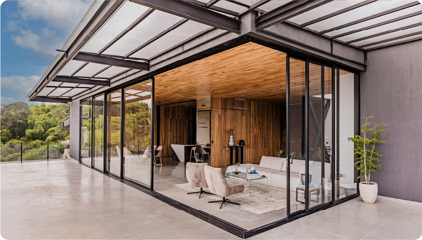 Los sistemas se pueden combinar con vidrios insonorizados o anti ruido que aíslan acústicamente disminuyen el ruido exterior. Las fachadas flotantes, por otro lado, son elegantes, modernas y de alto impacto visual, ofreciendo una perspectiva que permite una relación visual entre el interior y el exterior.